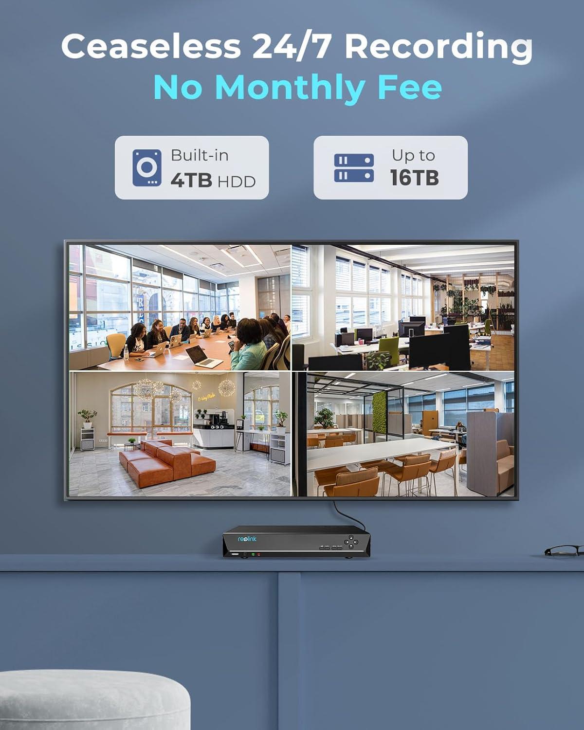 imageREOLINK 12MP Business Security Camera System 16pcs H265 12MP IP Camera Wired Color Night Vision Person Vehicle Pet Detection TwoWay Talk 16CH NVR 4TB HDD RLK161200B8A Bundle