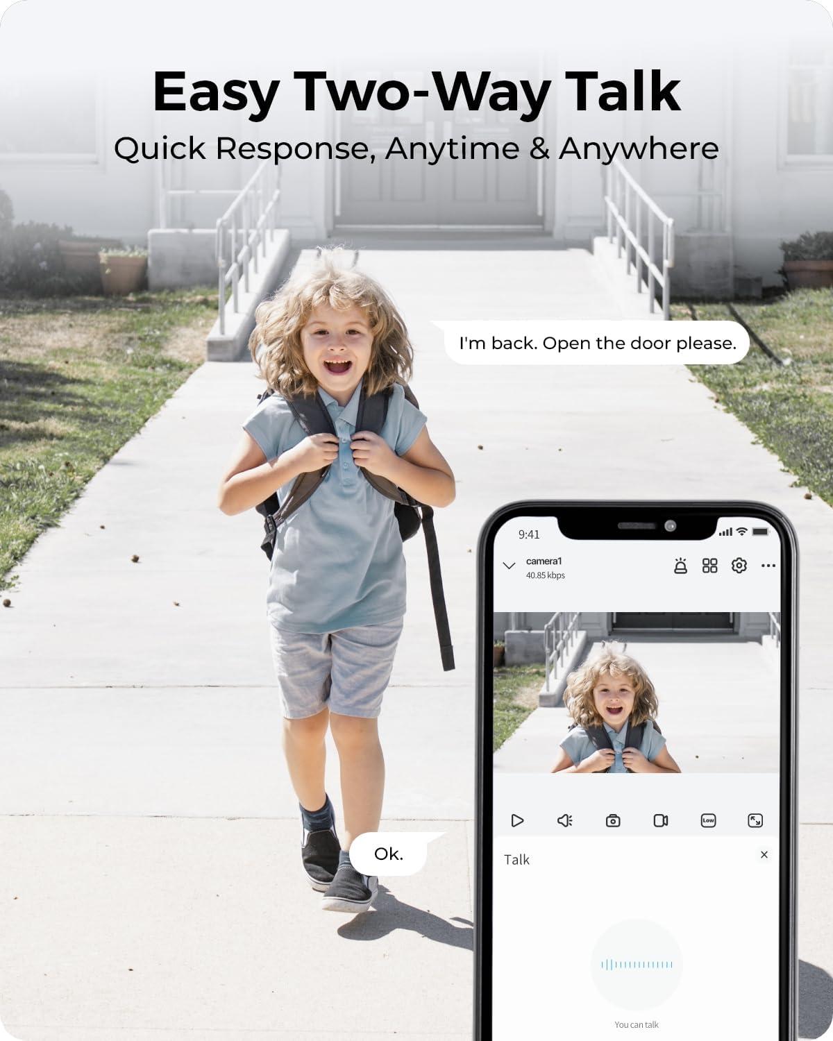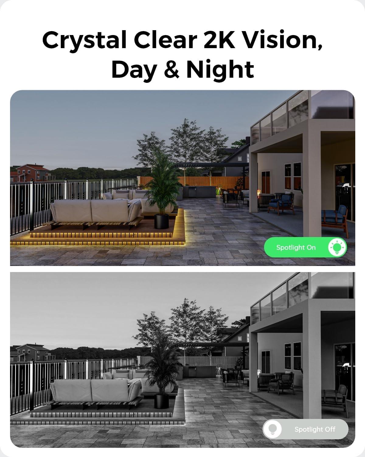 [2K 3MP HD RESOLUTION] Capture every detail with exceptional clarity. When switching the spotlights on, enjoy superior nighttime surveillance in vivid color. Utilize the time-lapse feature to record and observe long-term events like flower blossoms or sunsets in just a few seconds or minutes.