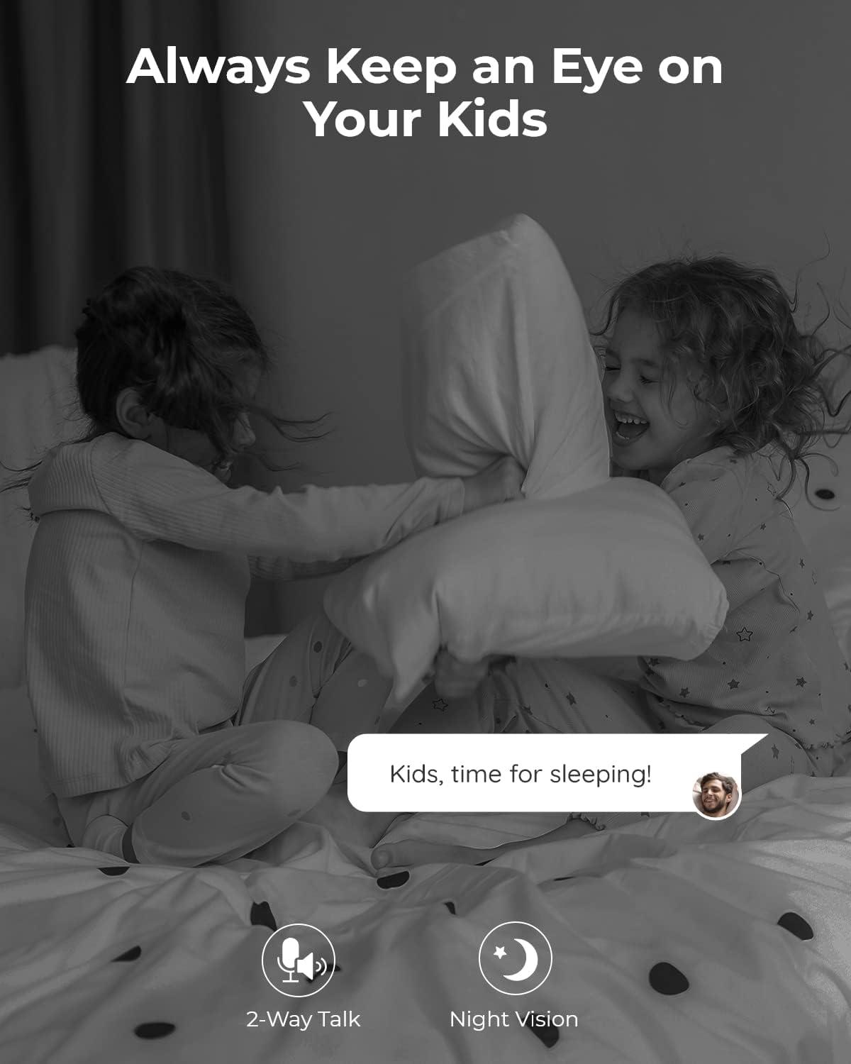 Motion/Human/Pet Detection & Alerts: The indoor security camera can smartly analyze the shape of people and pets to accurately detect their motion and send you real-time motion-triggered alerts