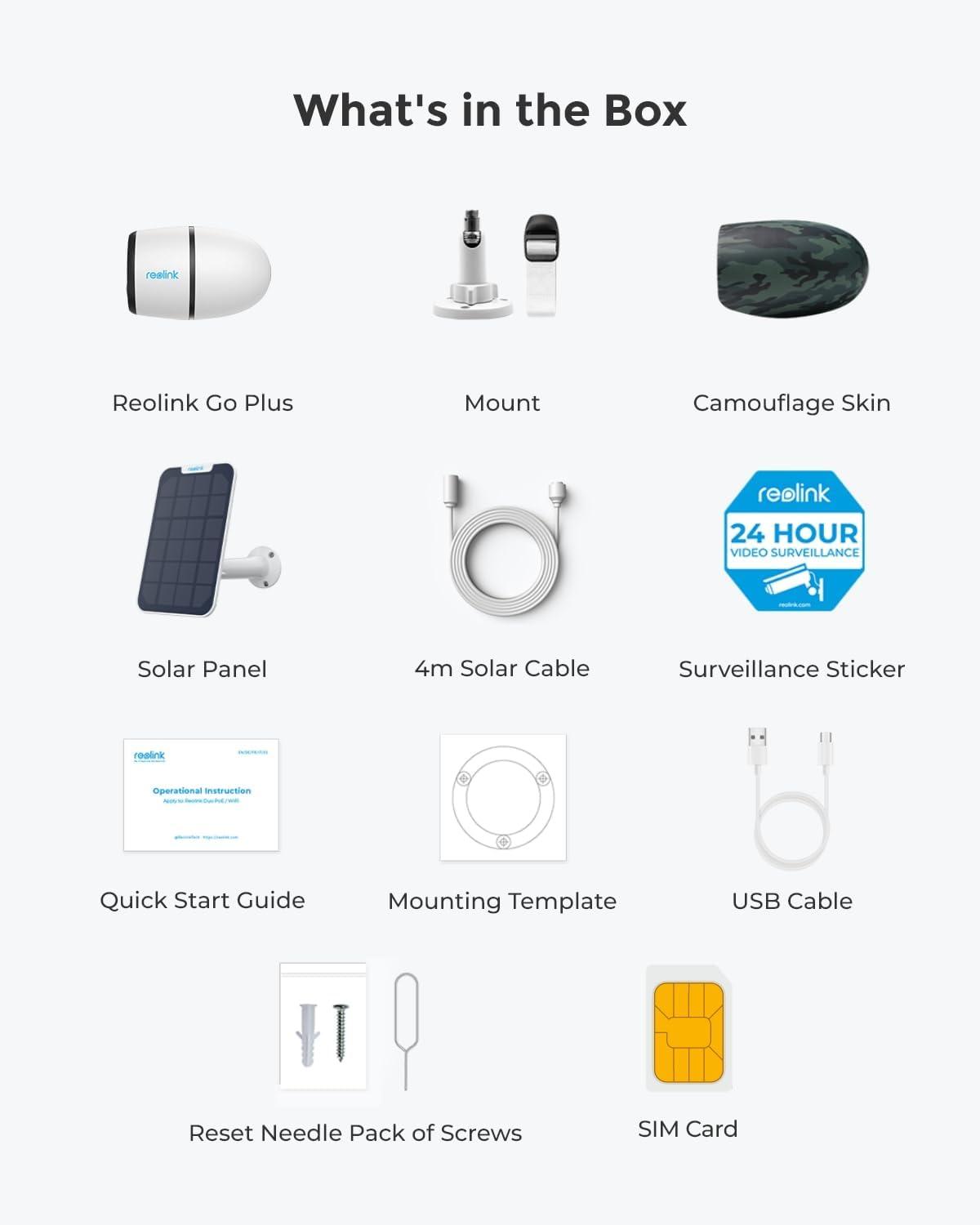 STAY CONNECTED WITH 4G LTE: The included SIM card can automatically connect to the carrier with the strongest signal. It supports three major carriers in the US: AT&T, Verizon, and T-Mobile. Users can activate, refill the SIM card and track data usage via Reolink App.