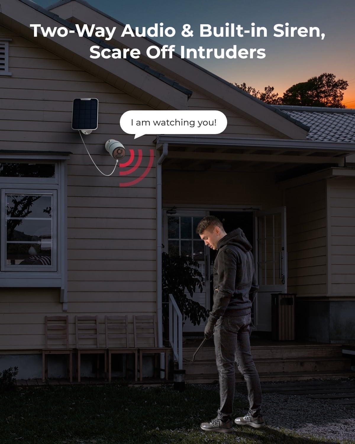 2K SUPER HD & 33FT NIGHT VISION: With 4MP resolution, this wireless security camera captures sharp, clear footage for more visual details. Its infrared LEDs provide superior image quality for your nighttime recordings, supporting up to 10 meters (33ft) night vision.