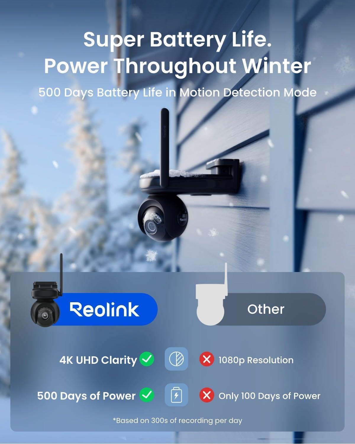[500 Days of Use + Solar Panel for Hands-Free Recharge] This solar camera features a high-capacity battery that supports up to 500 days of operation in standard mode (300 seconds of recording per day)