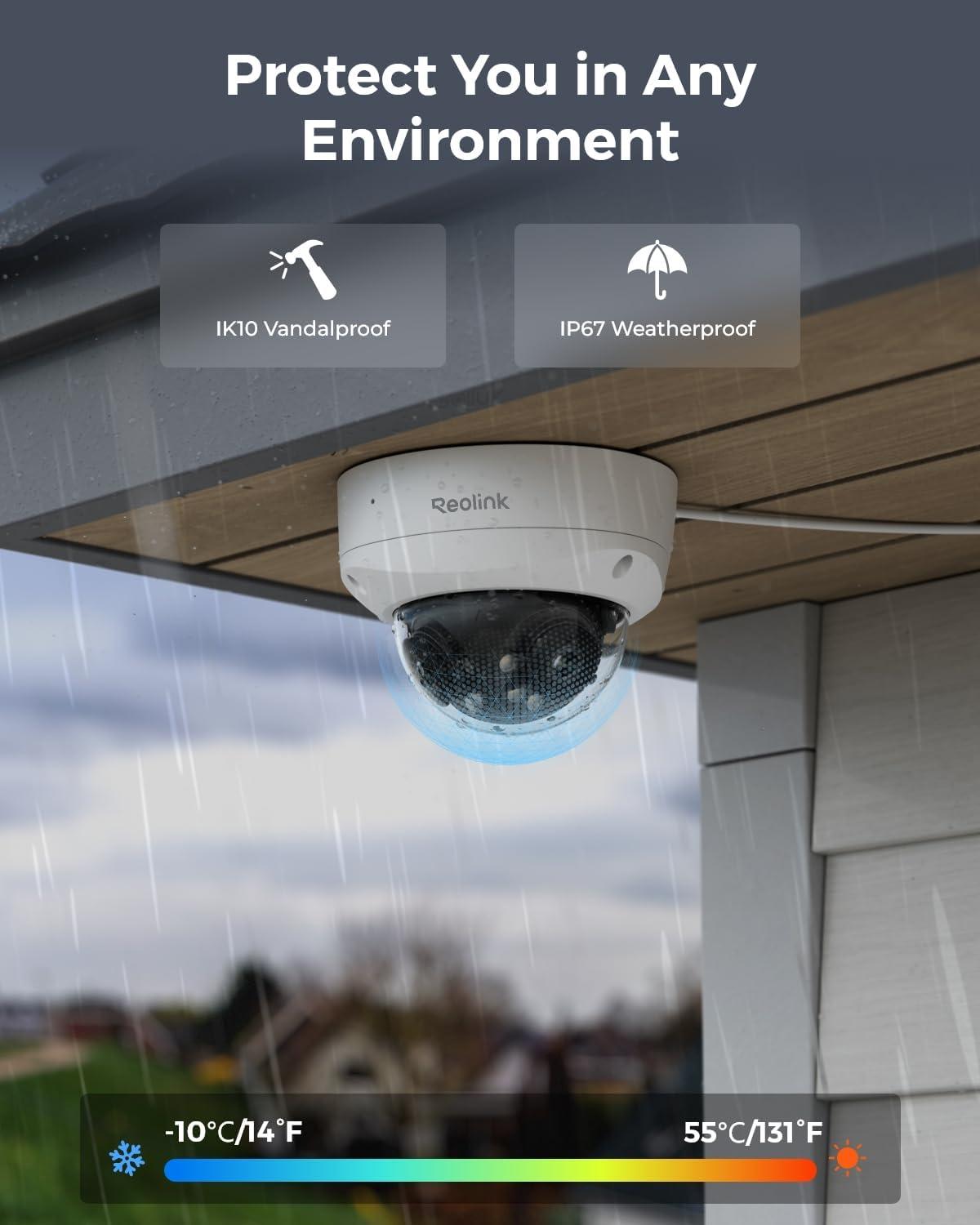 Easy PoE Setup and Installation: Thanks to the Power over Ethernet (PoE) technology, this outdoor camera can transmit videos and get power simultaneously via only one network cable. Easy plug-and-play for a reliable connection.