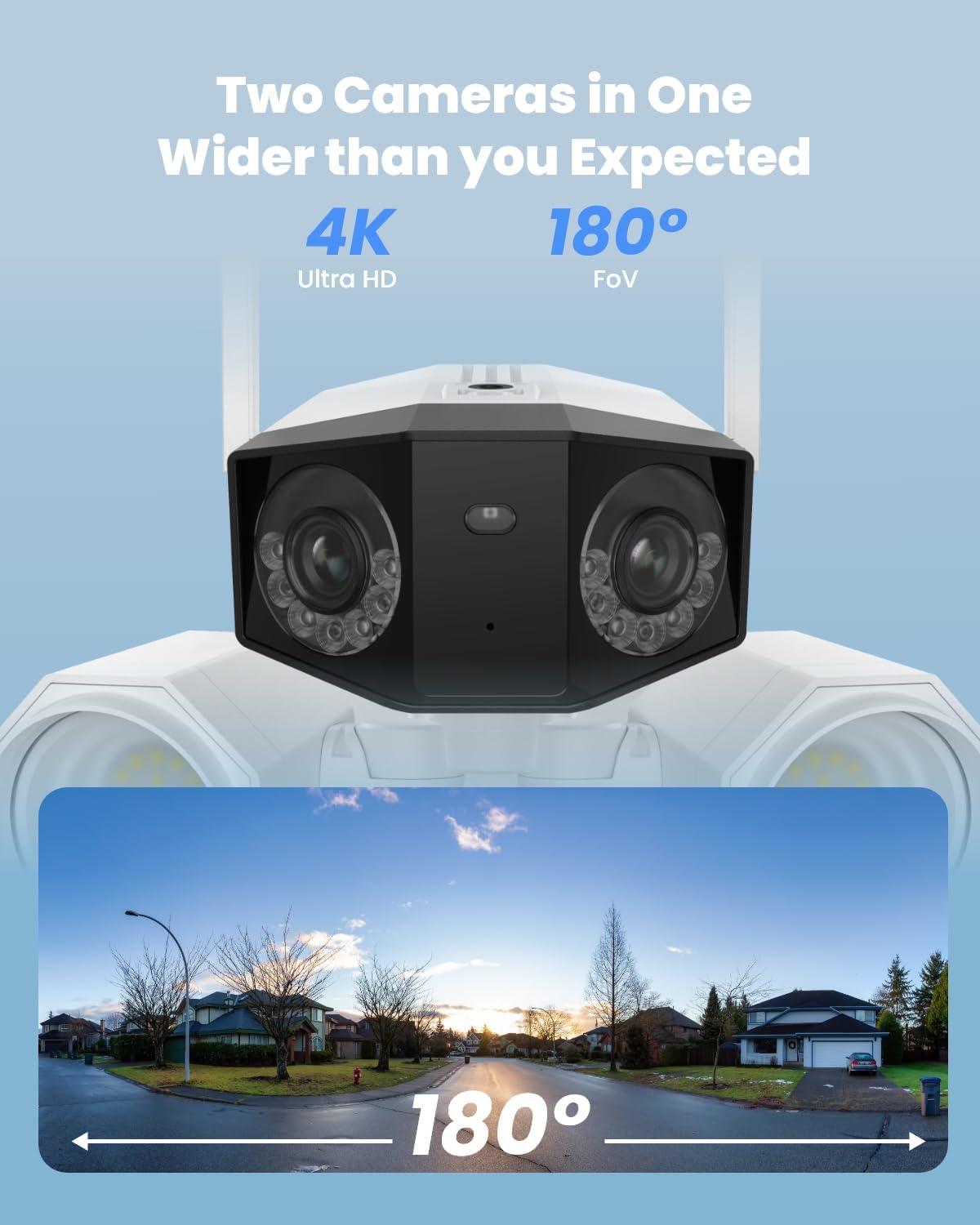 4K 8MP UHD & 180° PANORAMIC VIEW: Enjoy fantastic 4K dual camera with 8MP ultra HD resolution and 180° panoramic view, designed to cover more area with fewer blind spots for your backyard or garage. The 10X digital zoom offers the flexibility to focus on distant objects when needed.