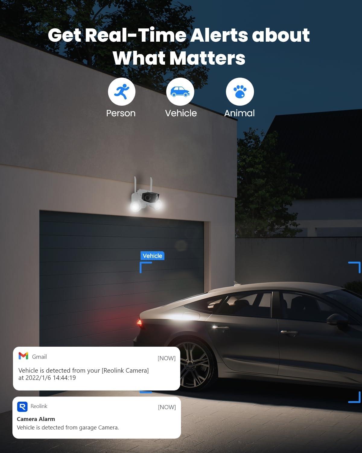SMART DETECTION WITH 24/7 RECORDING: Featuring advanced AI detection, this ip camera distinguishes between person, vehicles, and animals to deliver more relevant alerts by push/email through Reolink App/Client.