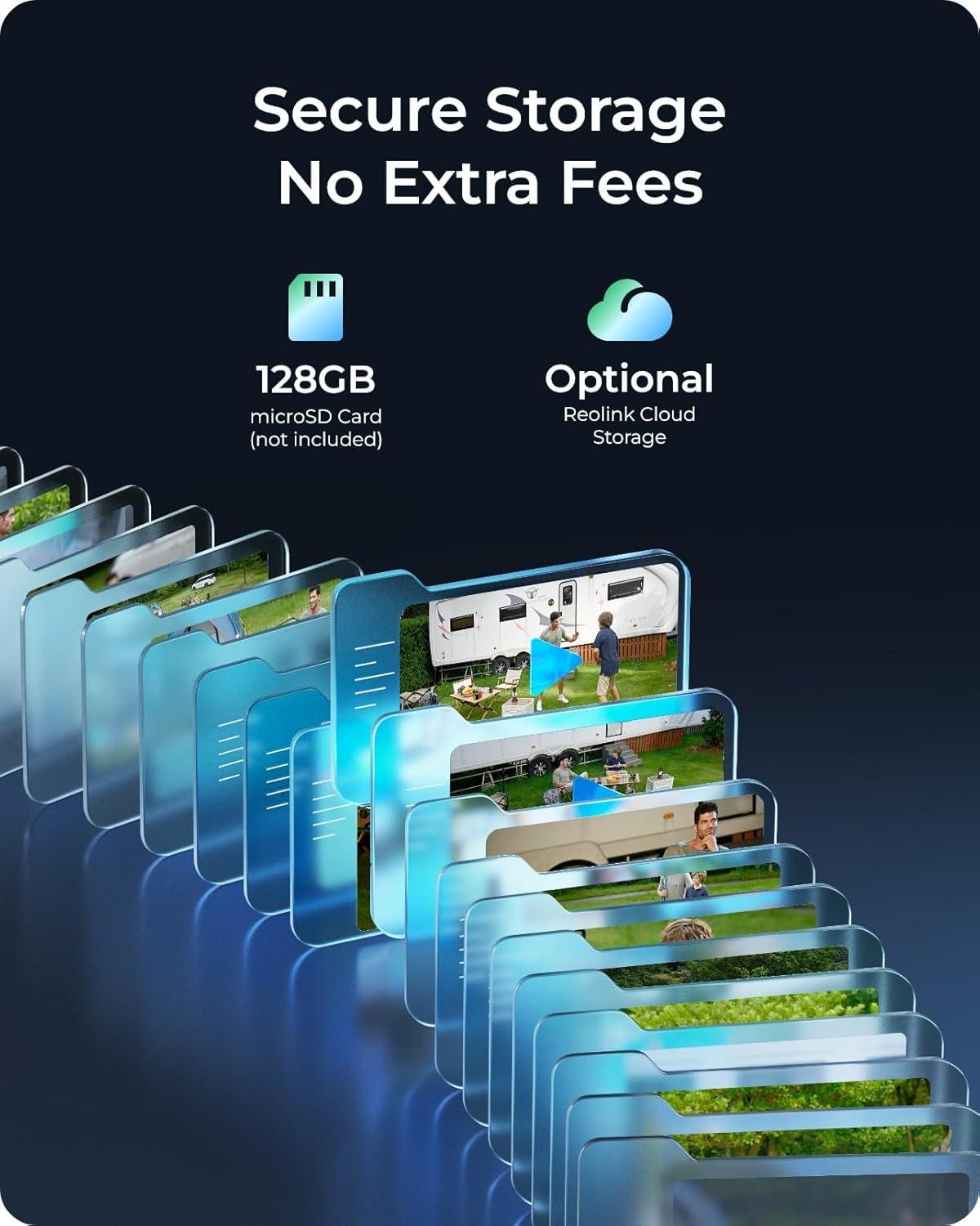 3G/4G LTE Network & Forever Solar Power: The combination of the solar power panel and 4G connection on this cellular camera saves you from the troubles of finding sockets or networks outdoors Ideal for country houses, construction sites, etc. Reolink SIM card is included. Users can activate, refill the SIM card and track data usage via Reolink App.