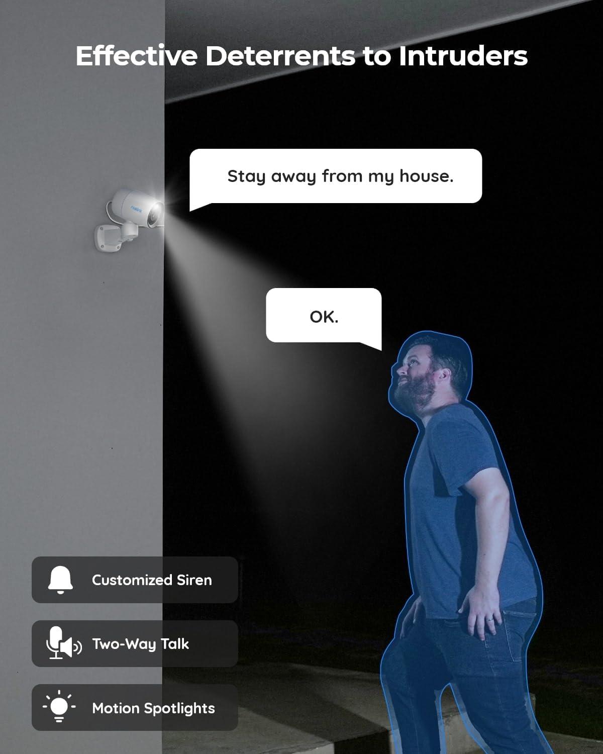INSTANT & EFFECTIVE DETERRENTS: You'll receive app push and email alerts once a motion event is detected. Spotlights and the siren will be triggered immediately to deter suspicious visitors. Customize the siren with your own voice for even better effects.