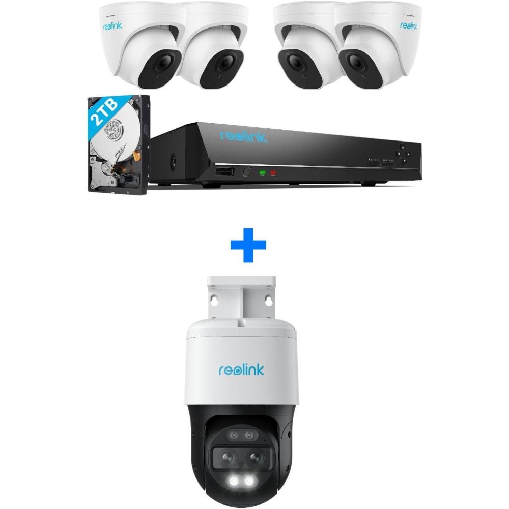 1 x RLK8-800D4 8MP 8-Channel PoE Security Camera System with 4pcs IP Cameras with Person Vehicle Detection (4x18M CAT5 Ethernet cables are included for connection).