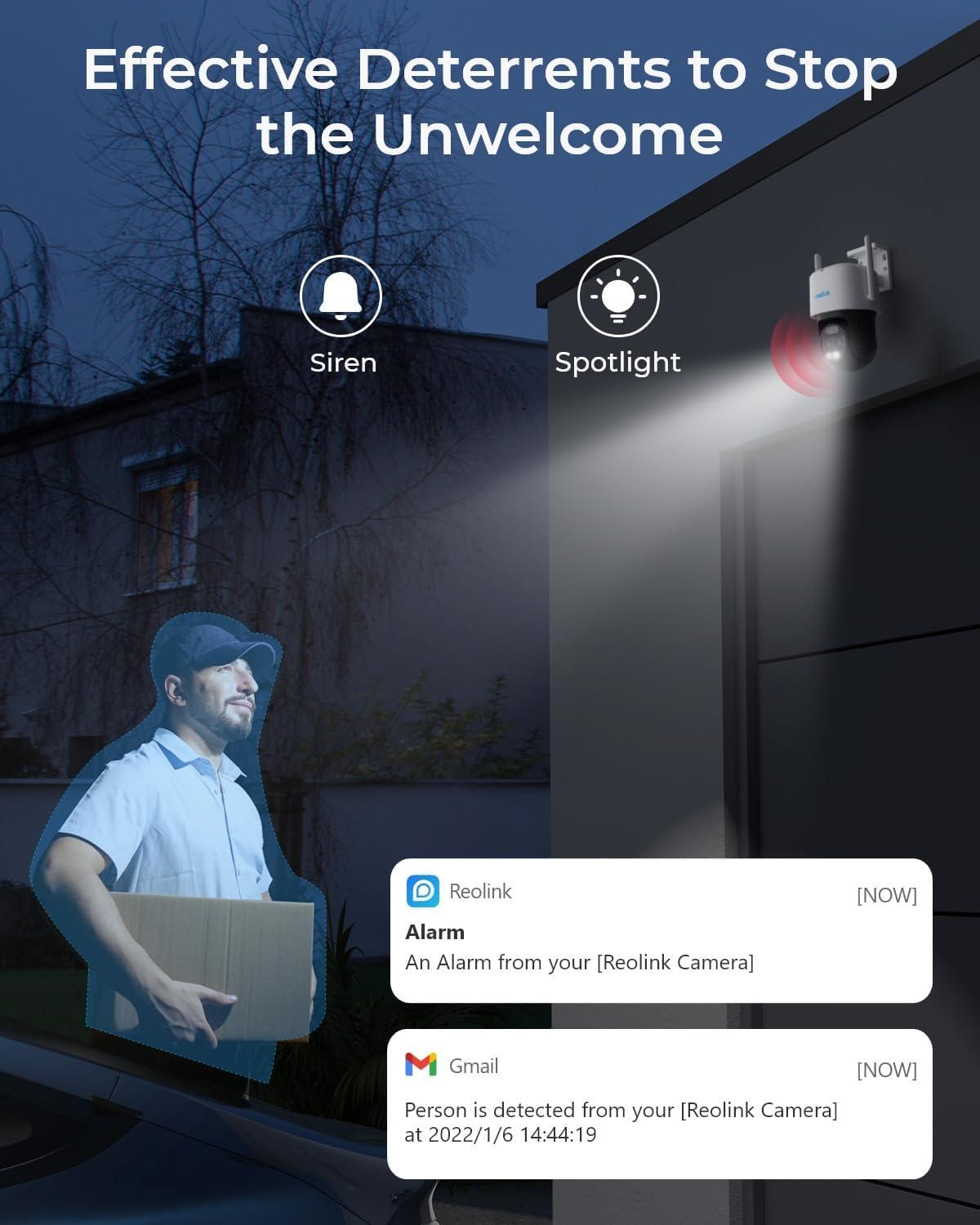 SMART DETECTION & DUAL-IMAGE AUTO TRACKING: This advanced feature combines a 355° pan and 90° tilt to provide comprehensive, full-range tracking. Rest assured knowing you won''t lose sight of any moving subject, whether it's a person approaching your property, a vehicle entering your driveway, or an dangerous animal passing by. The dual lenses work in harmony to deliver both wide and distant views, allowing you to monitor and track intruders in full-view images and capture fine details simultaneously.