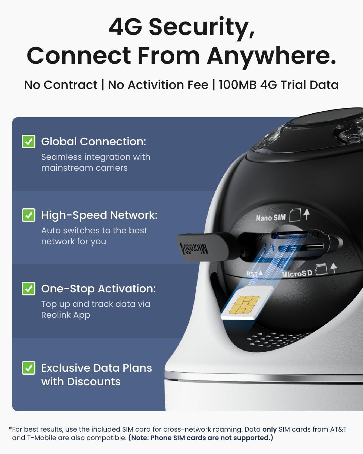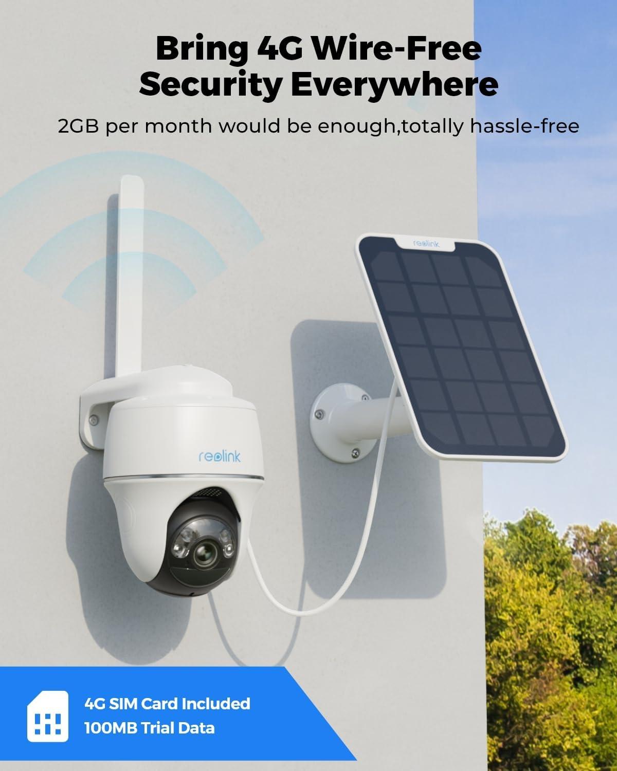 4G LTE + REOLINK SIM CARD INCLUDED: The combination of the solar power panel and 4G connection on this cellular camera saves you from the troubles of finding sockets or networks outdoors Ideal for country houses, construction sites, etc. Reolink SIM card is included. Users can activate, refill the SIM card and track data usage via Reolink App.