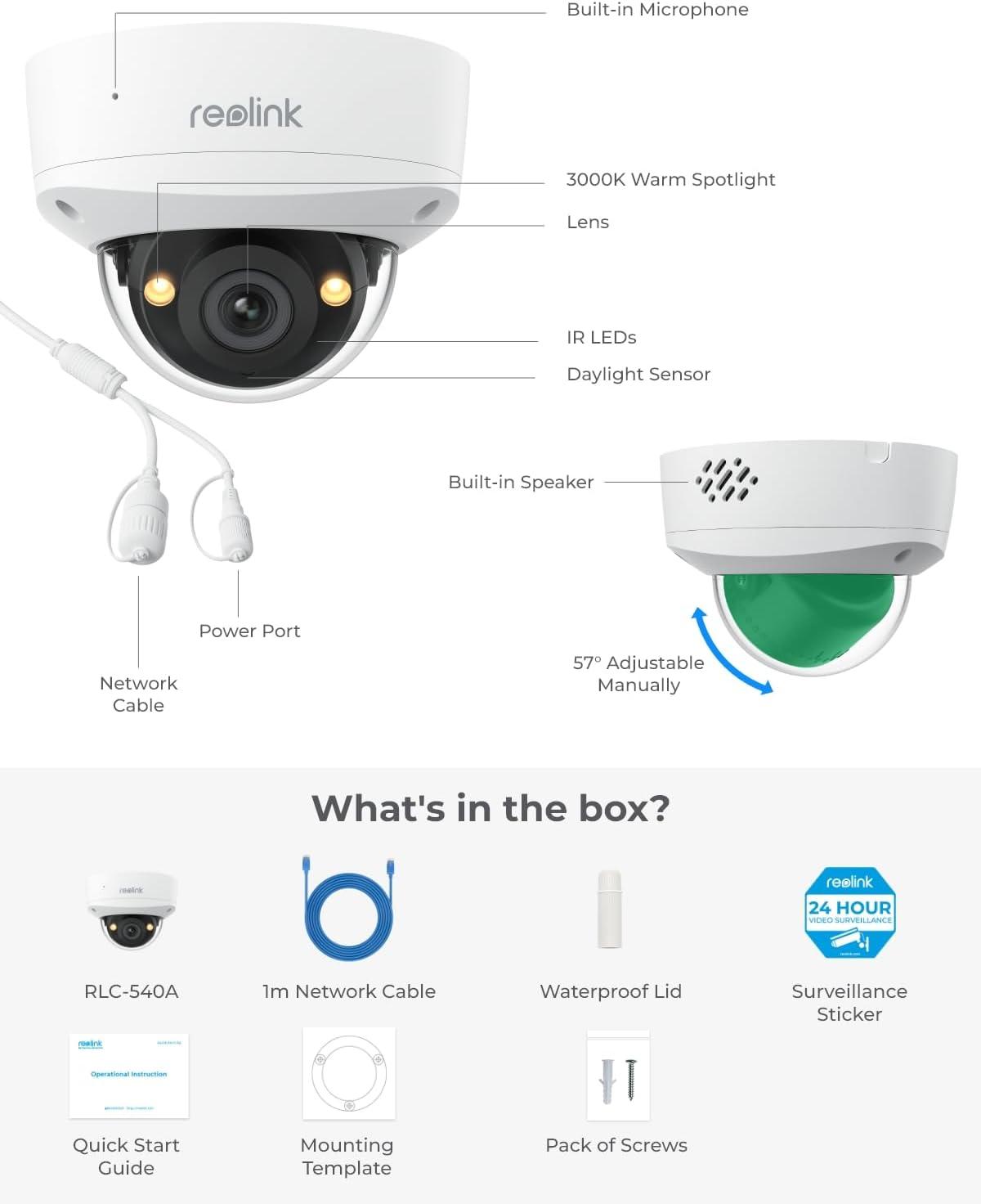 IK10 VANDALPROOF & METAL HOUSING & IP67 WATERPROOF: Our upgraded RLC-540A is built to last and gives you a better experience. It can withstand all kinds of vandalism and extreme weather conditions, ideal for both indoor and outdoor use.