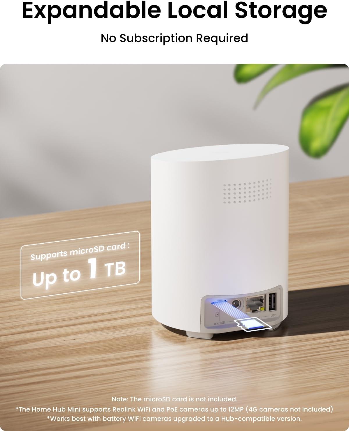 Local Storage, No Monthly Fees: Centralizes video storage from all connected cameras, expandable up to 1TB microSD. AES128 bank-level encryption keeps footage secure. (microSD card not included)