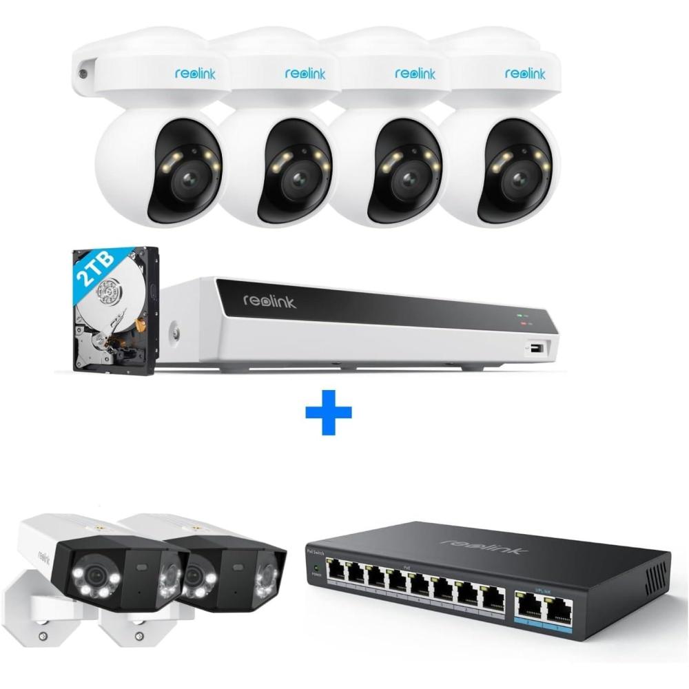 1 x Reolink PoE Switch with 8 PoE Ports, 2 Gigabit Uplink Ports, 120W for All PoE Ports, Ideal for Reolink RLN36 NVR and Reolink PoE IP Cameras, and 8CH NVR Pre-Installed with 2TB HDD