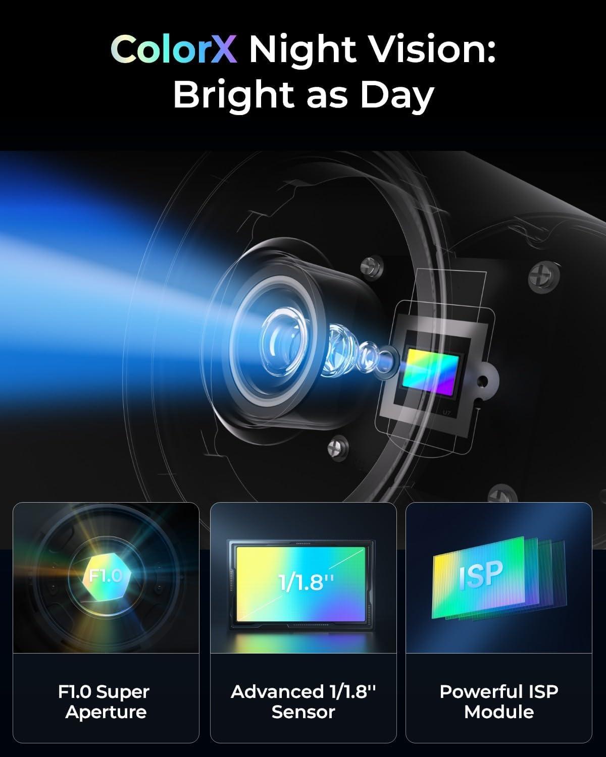4K True Full-Color Night Vision: Capture 4K UHD images and videos that are bursting with clarity, color, and defined detail from day to night. The lens with F1.0 super aperture captures 4x more lights than coventional F2.0 ones. With 1/1.8″ image sensor, it processes lights with higher sensitivity to form vibrant images at night. Paired with powerful ISP module, CX810 reproduces the night without any color distortion.