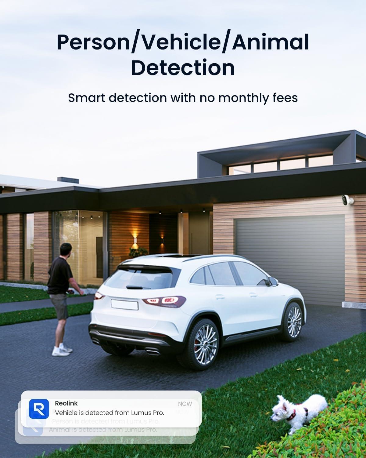SMART DETECTION + MOTION ZONE: Thanks to advanced algorithms, the camera accurately detects people, vehicles, and animals, greatly reducing false alarms. To further minimize the unwanted alerts, customize the detection sensitivity and motion zone. All these features come with no subscription or fees.