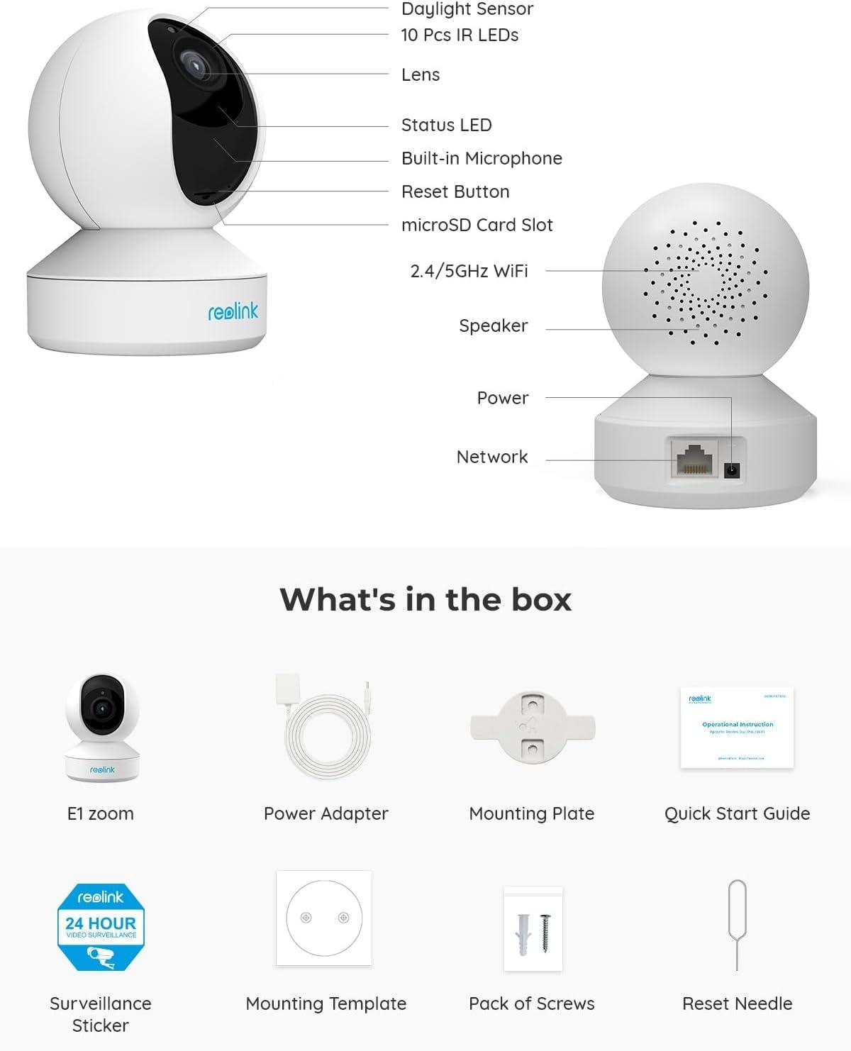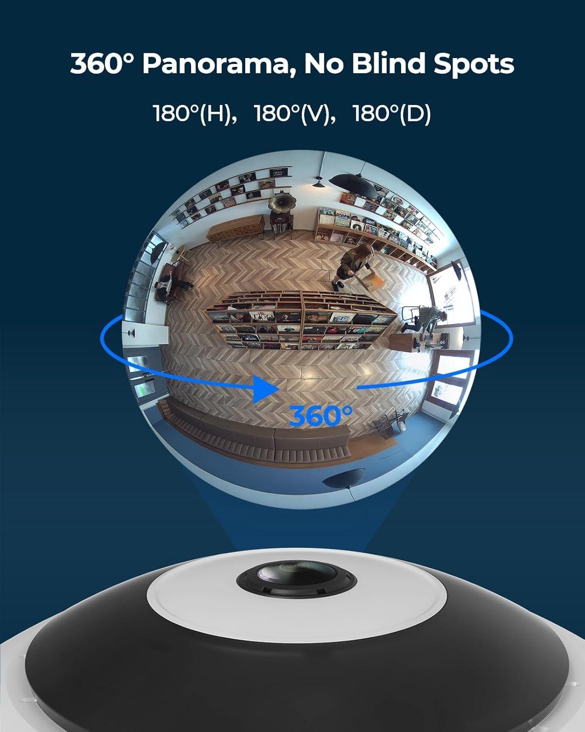 REOLINK Indoor Security Camera, Fisheye Camera FE-W White with 2K+ 6MP 360° Panorama, Bundle 5MP E1 Zoom WiFi PTZ Camera with Auto Tracking, Ideal for Baby/Pet Monitor/Home Security, Dual Band WiFi