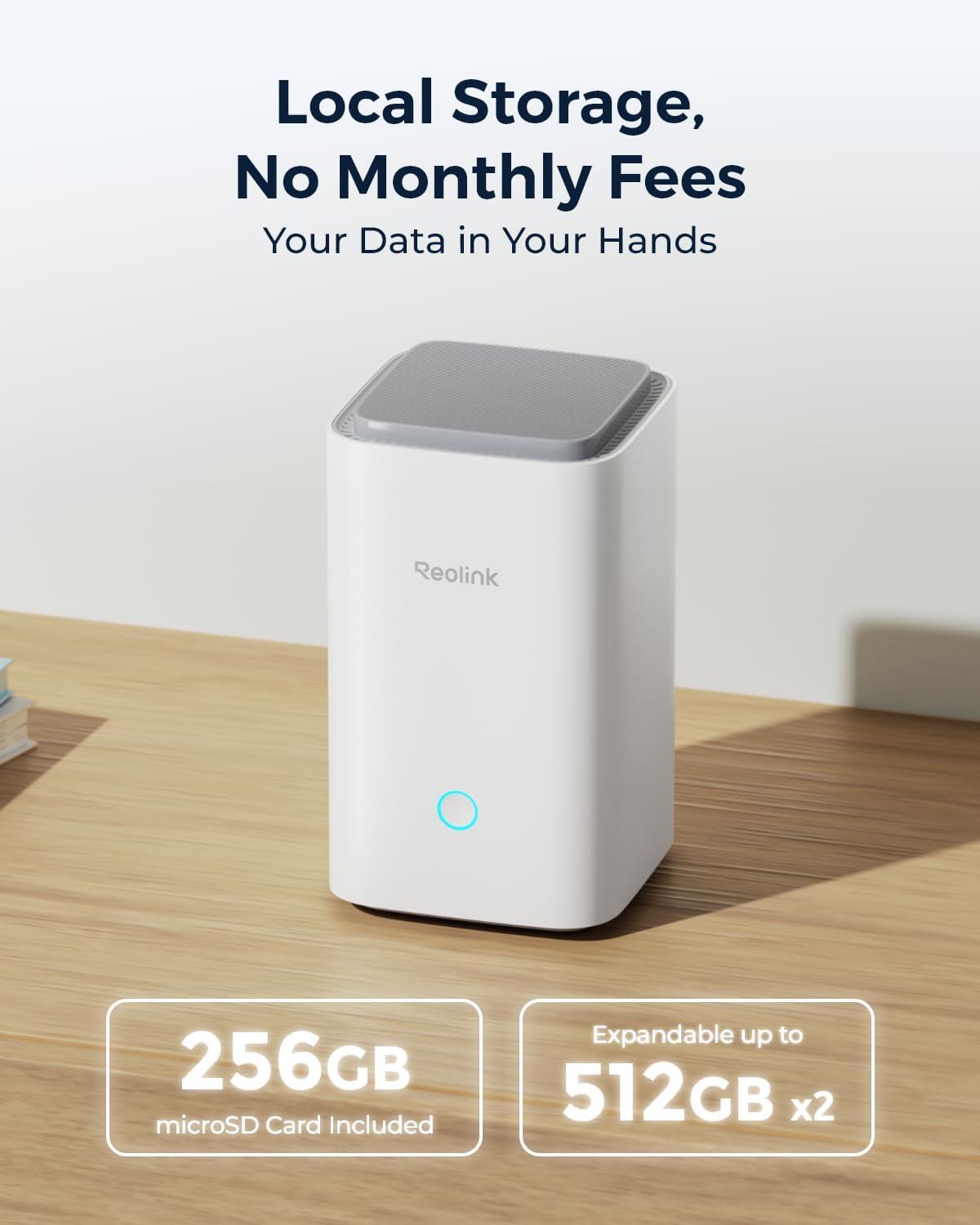 CENTRALIZED STORAGE: With a 256GB microSD card included for the hub, this system provides ample space for all your recordings at no additional cost. For even greater capacity, it supports up to 2×512GB microSD cards. Built-in AES-128 encryption and anti-theft algorithms protect your data from unauthorized access.