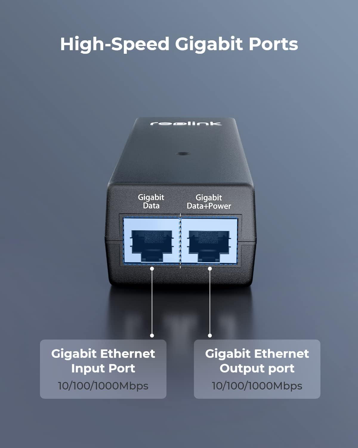 Reolink Gigabit PoE Injector, Convert Non-PoE to PoE, Supplies PoE+ (30W) or PoE (15.4W), Distance up to 100m, Plug & Play, Suitable for Reolink PoE Cameras.