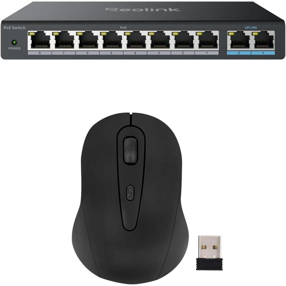 Reolink PoE Switch with 8 Ports, 120W for All Ports, Ideal for Reolink NVR and PoE Cameras, bundle with A Wireless Mouse with USB Nano Receiver, Works 8-Channel/16Channel NVR