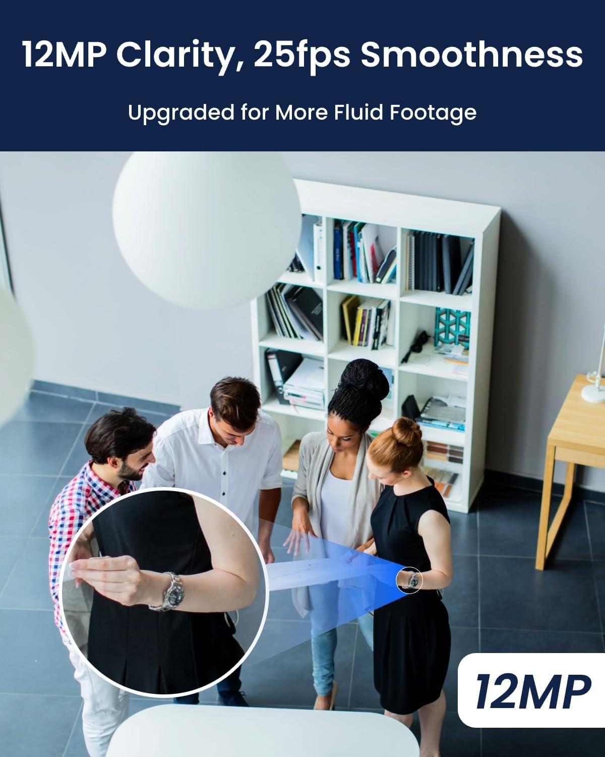 12MP UHD @ 25FPS: With 12MP ultra-high definition, this pro-grade camera captures crystal-clear images with incredible details. Paired with 25fps, it ensures smooth video streaming and playback, even in fast-moving scenes.