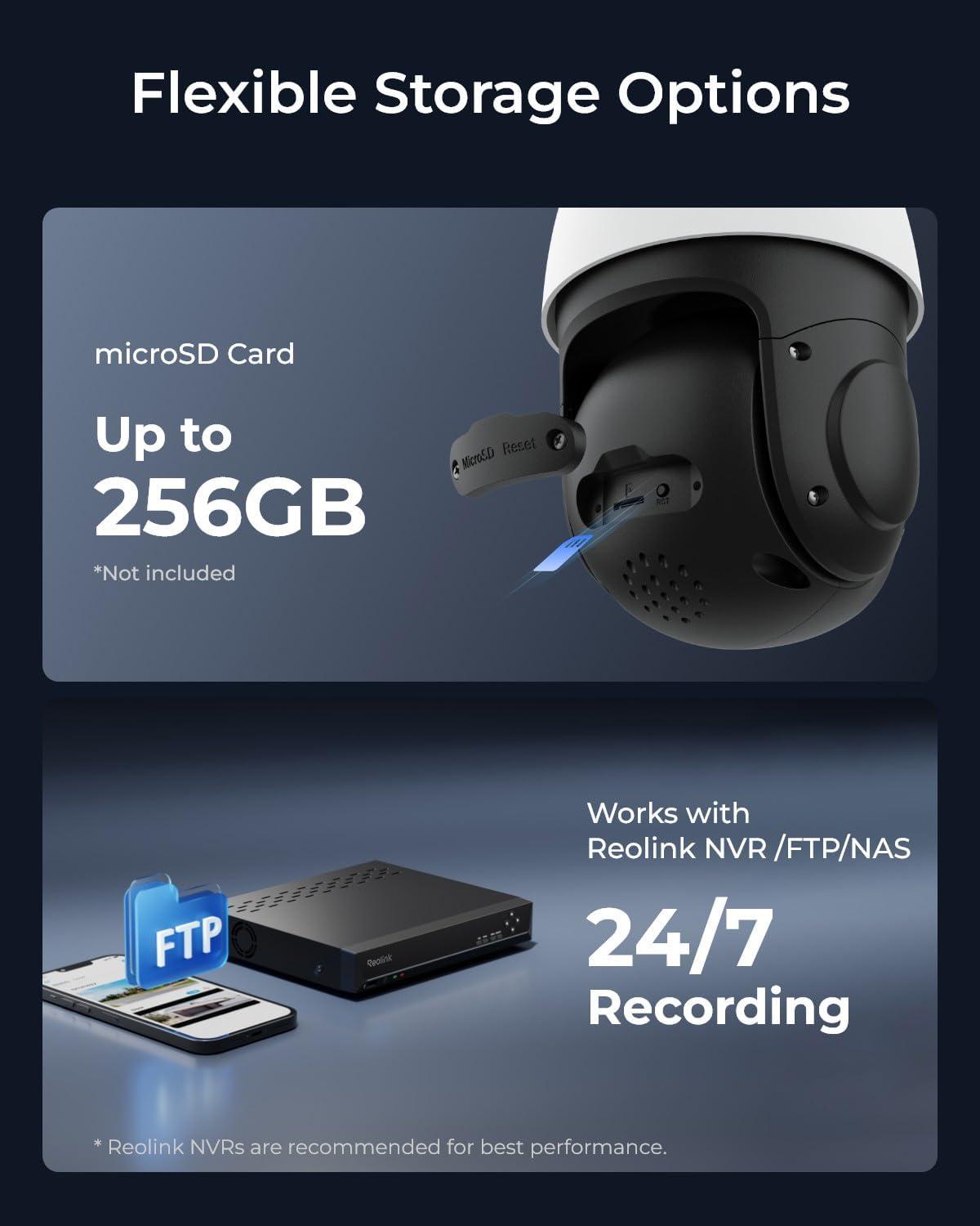 PoE Technology & Multiple Storage and Recording Options: A single cable handles the stable 4K video transmission and the power supply, reducing wire clutter while ensuring a robust signal. It is recommended to use an IEEE802.3at PoE switch for optimal performance.