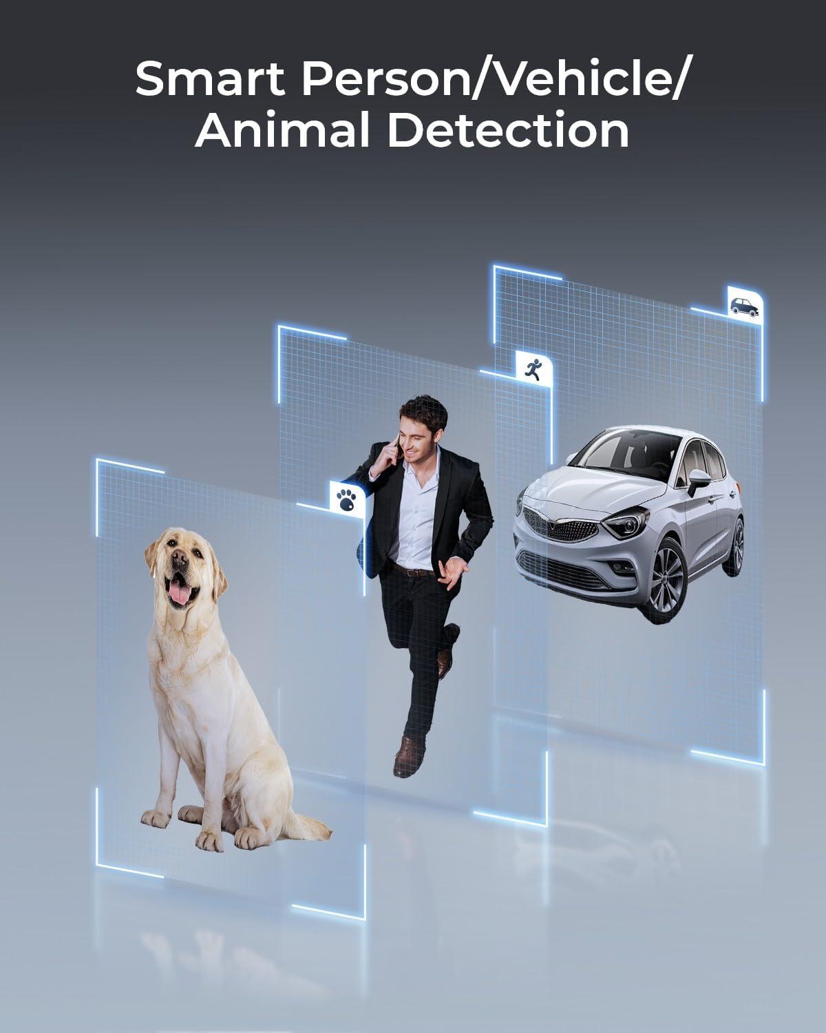 Smart Detection & 2-Way Talk: Accurately identify person/vehicle/animal (not only cats/dogs but a wide array of animals) movements, reducing false alarms. Engage in seamless conversations with individuals near the camera via two-way talk, simple yet efficient.