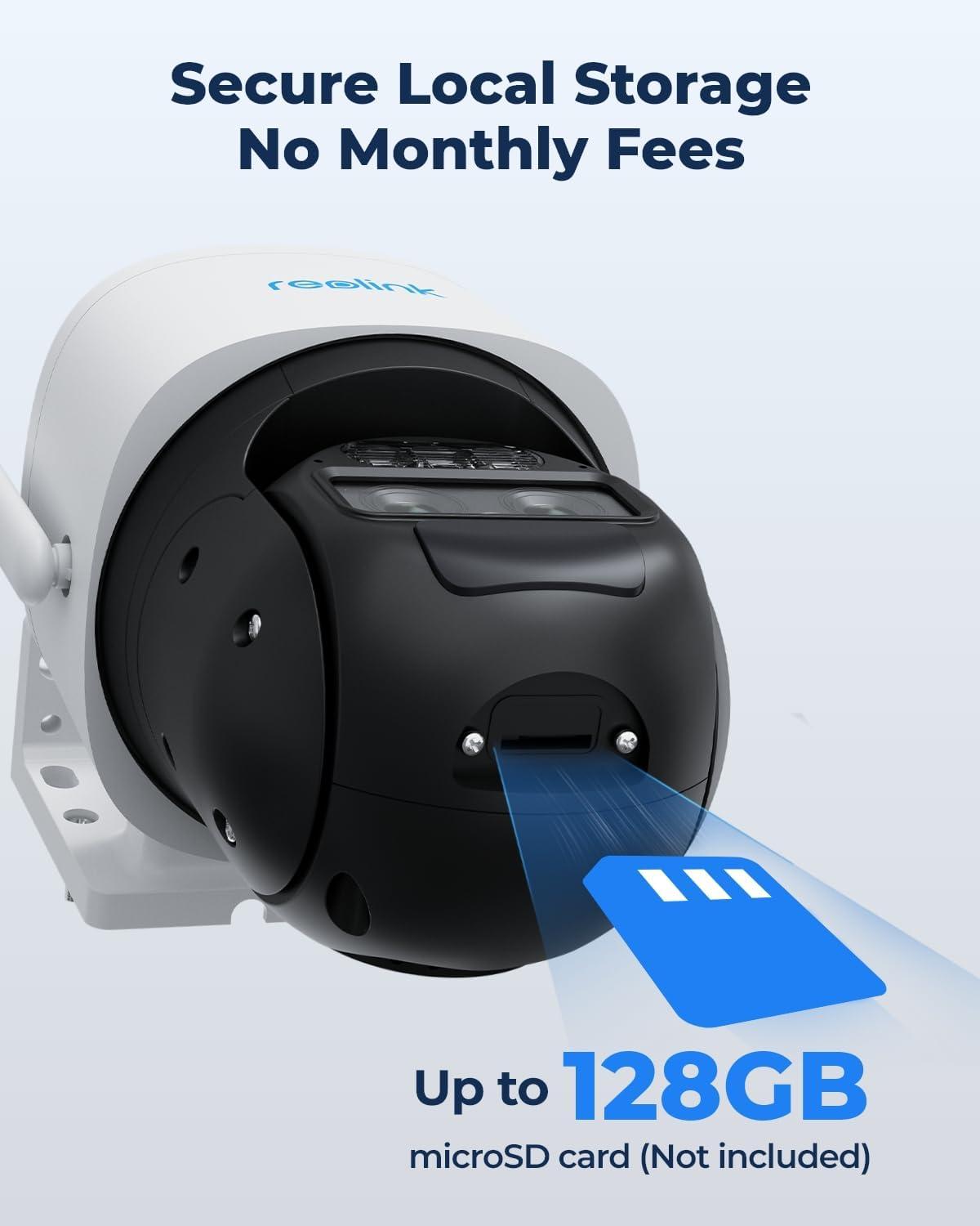 Secure Local Storage, No Subscription Fees: Keep your video recordings secure with local storage (up to 128GB microSD card, not included) for playback.