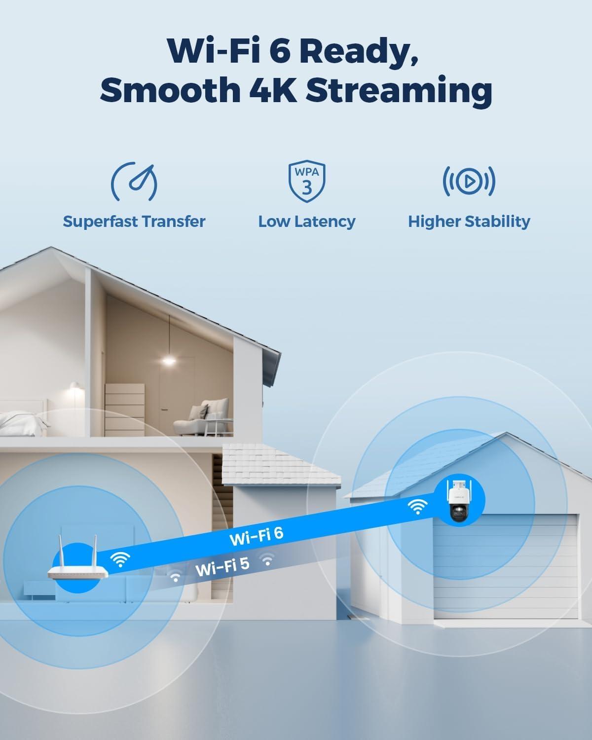 SOLAR/BATTERY POWERED, WIRELESS SETUP: The camera works on 2.4/5GHz WiFi and continuously powered by the new 6W solar panel, freeing you from frequent battery charging hassles.