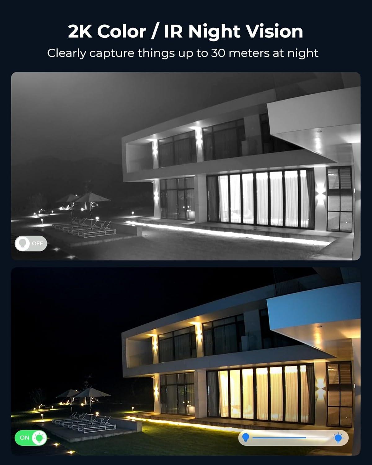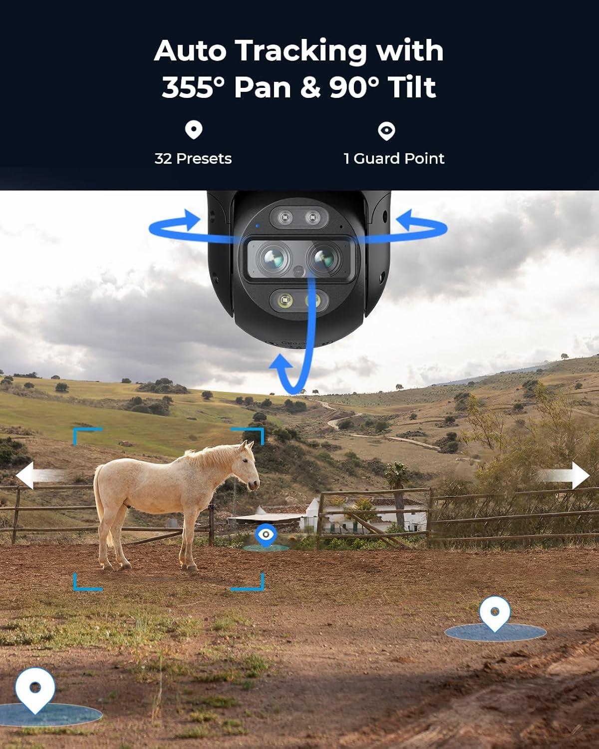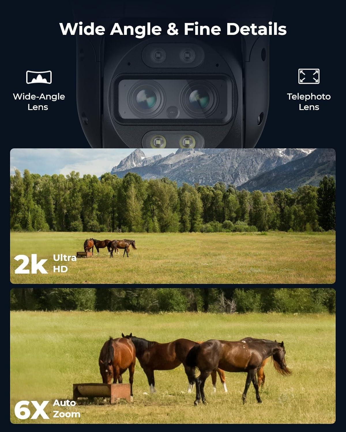 Crisp 2K 4MP Day & Night Vision: With 2K 4MP super HD high resolution, the dual lens provides a greater visual experience. At night, it provides spotlight full-color and infrared black-and-white images to capture finer details.