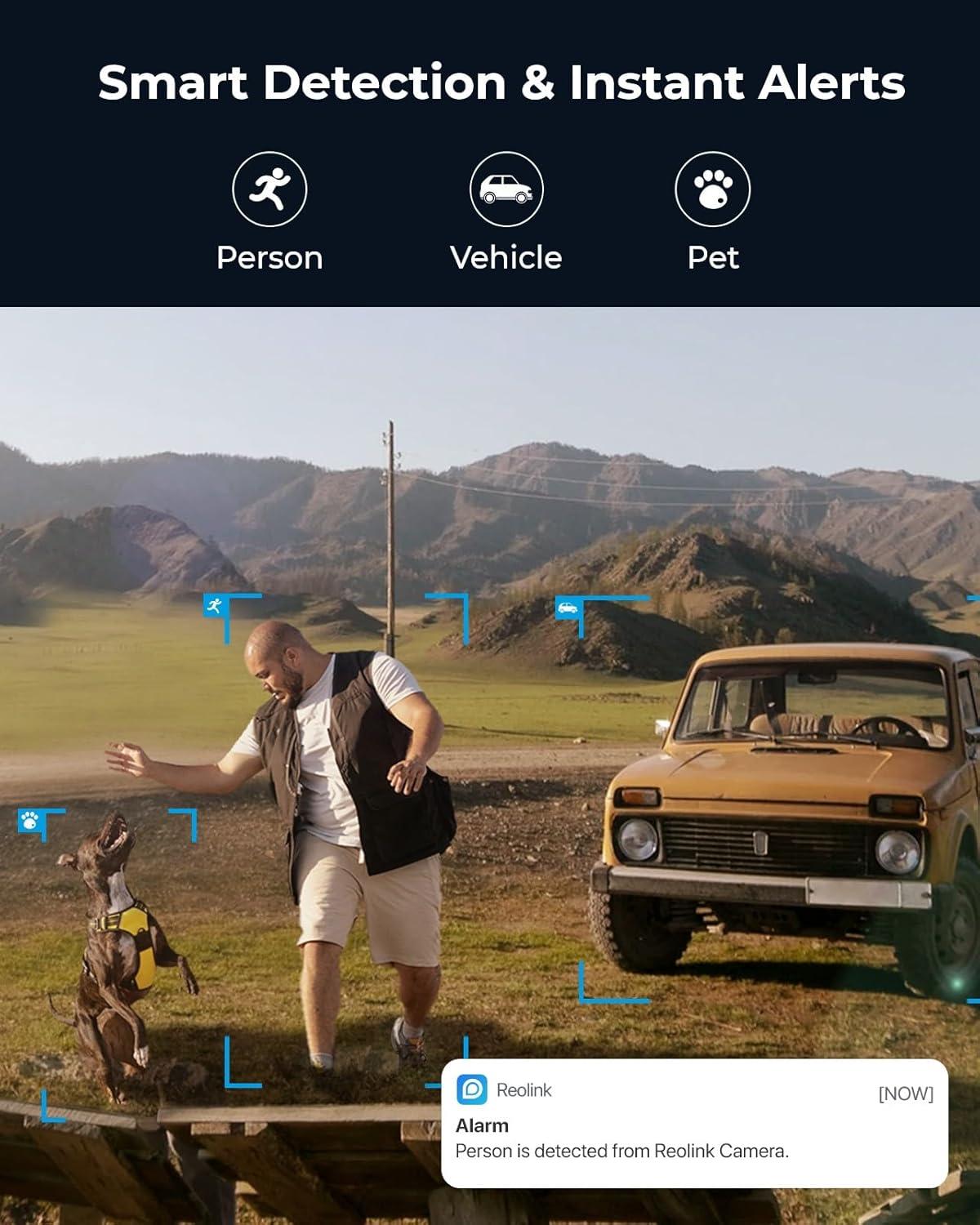 Smart Detection & Accurate Alerts: Reolink 4G outdoor camera can distinguish humans, vehicles, and pets from other objects and provide relevant alerts to you by email, app push, or siren immediately. You can also give real-time responses via two-way talk.