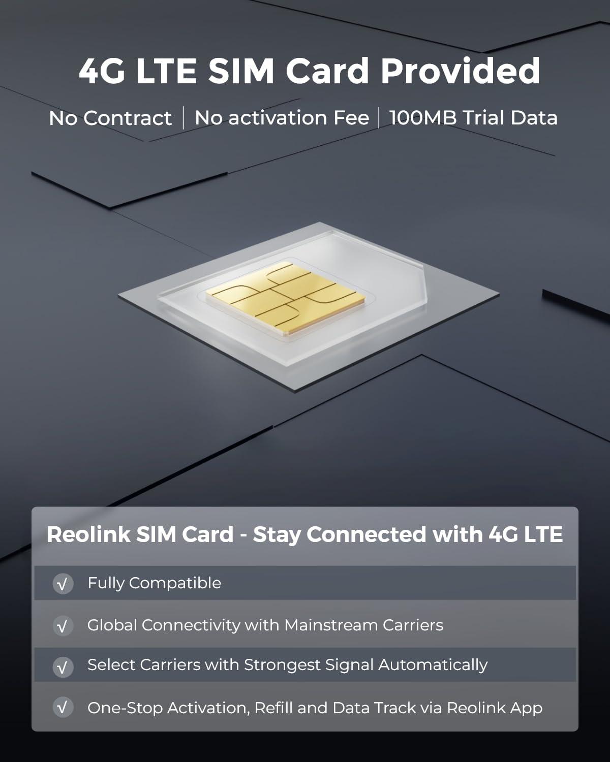 Multiple SIM Card Carries: Included Reolink SIM Card supports the carriers in the US: AT&T and T-Mobile, and can select carriers with the strongest signal automatically. Users can activate, refill the SIM card, and track data usage via the Reolink App.